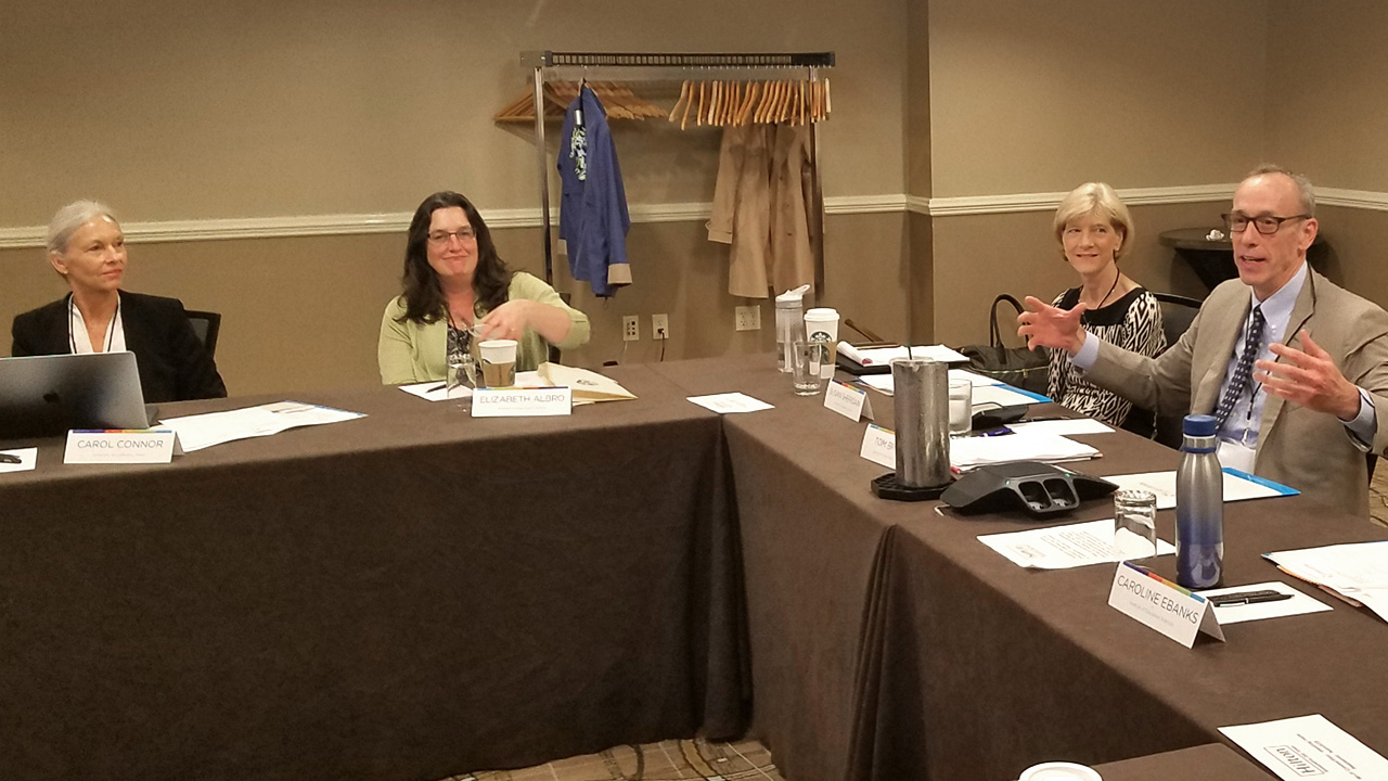 Institute of Education Sciences Director Thomas Brock, at right, discusses the value in using a collaborative, network-based approach when engaging in early childhood research at the May 2018 ELN meeting. Also pictured: Carol Connor, University of California, Irvine; Elizabeth Albro, IES and Susan Sheridan, University of Nebraska–Lincoln.